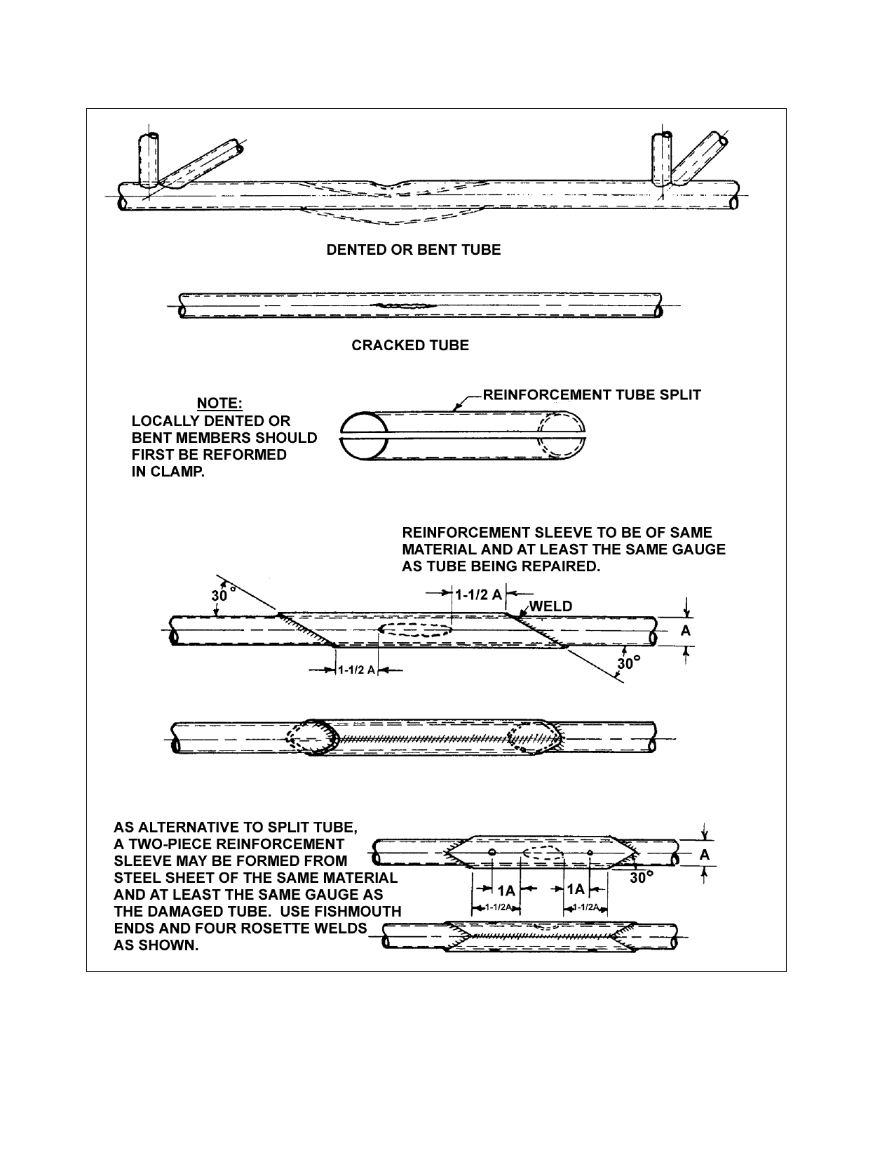 Members dented in a bay (repairs by welded sleeve).